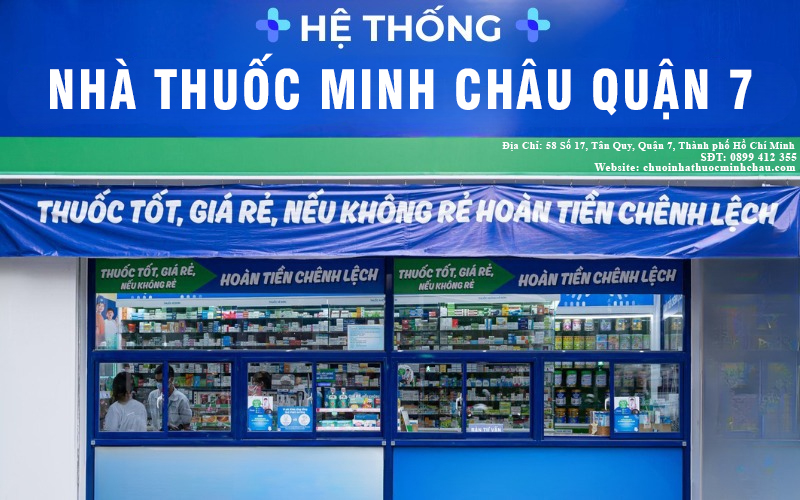 Nhà thuốc Minh Châu Quận 7 tọa lạc tại 58 Số 17, Tân Quy, Quận 7, Thành phố Hồ Chí Minh vị trí thuận lợi, dễ tìm và gần các khu dân cư đông đúc. Không chỉ là nơi cung cấp thuốc chính hãng, nhà thuốc còn là điểm đến đáng tin cậy để tư vấn sức khỏe, lựa chọn thực phẩm chức năng và mỹ phẩm chăm sóc sắc đẹp.