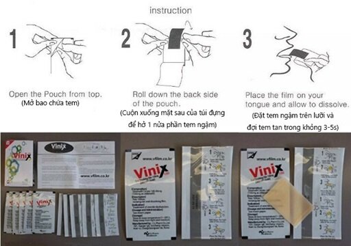 Lấy 1 tem ngậm Vinix đặt trực tiếp dưới lưỡi.